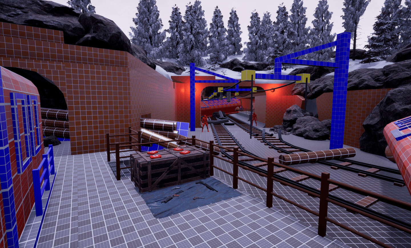 With this piece I wanted to design and create a level set around a remote ski village. “Frost Bite” follows the survivors as they travel across the snowy landscape. The player starts at the base of a train tunnel when a terrible train accident forces them on foot.